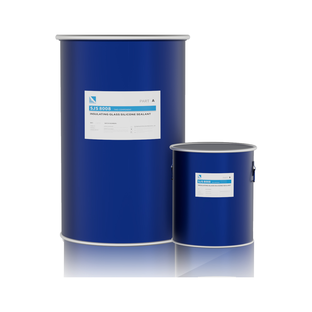 1.SJS8008 is atwo-component room temperature,neutralcuring,and cures to a high-modulus elastomeric insulating glass silicone sealant.During application,mix incertain ratio between part-A and part-B,SJS8008 reactsand solidifies into an elastomer with excellent stability in awide range temperature and no corrosion.